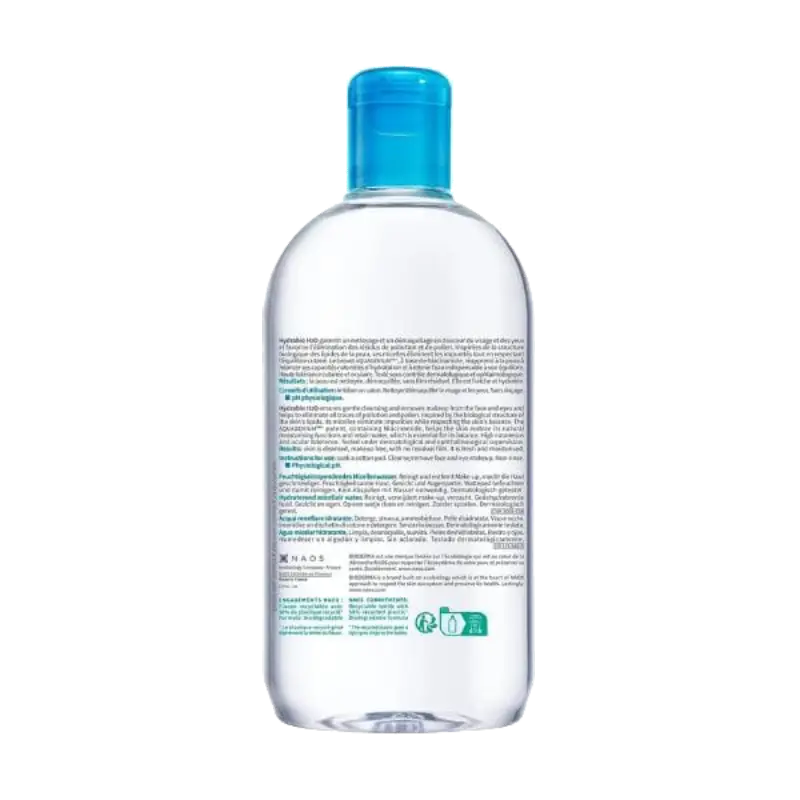 میسلار واتر بایودرما مدل آبی (Hydrabio H2O) با فرمول آبرسان خود نهتنها پوست را پاکسازی میکند، بلکه همزمان به تأمین رطوبت و بازگرداندن شادابی طبیعی پوست نیز کمک میکند.